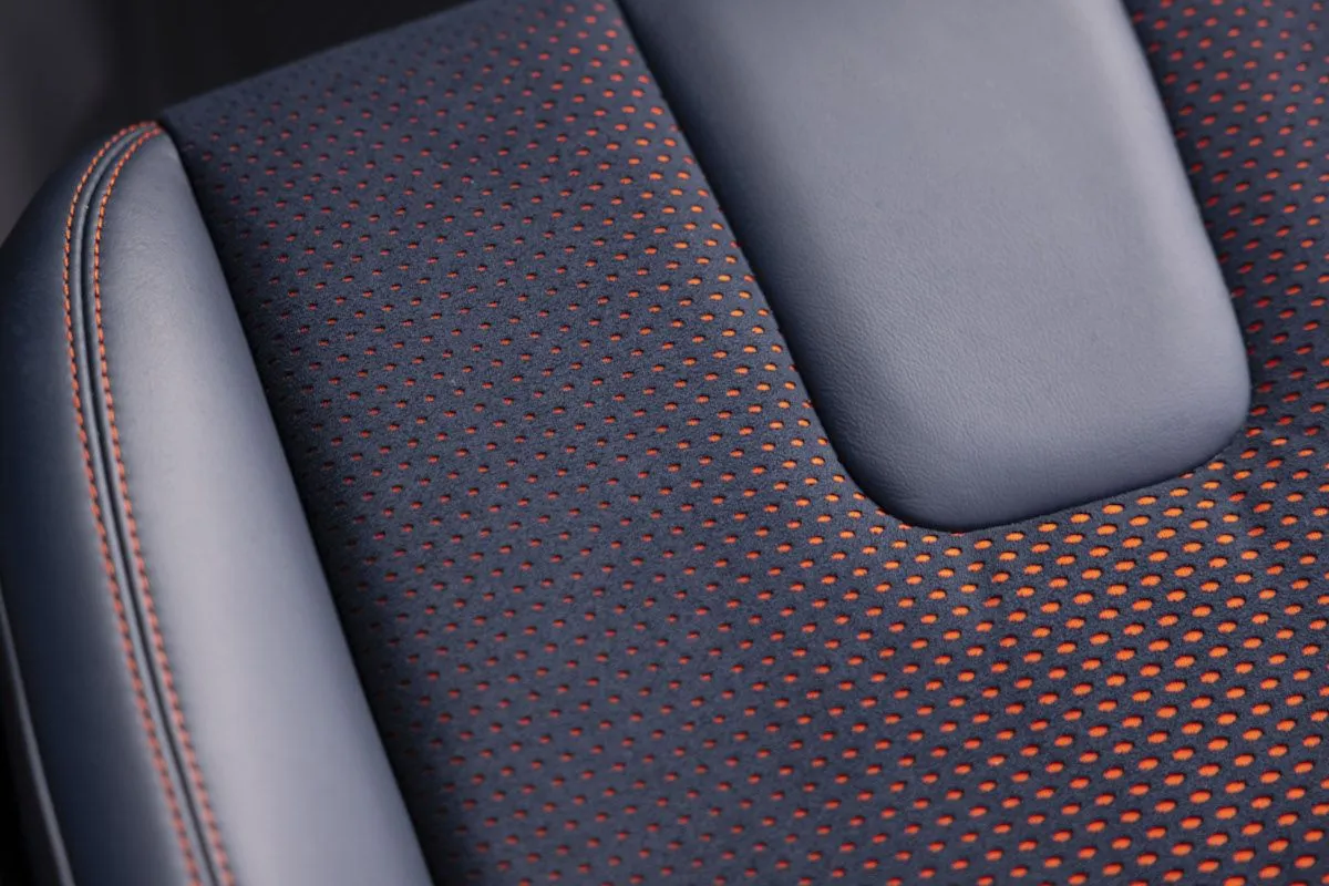 It's looking that way. The black seats have a silver behind the perforation, but they do have the Code Orange stitching. Here are a couple more good real-world pictures of the RB interior.So if you want the orange (background) you have to go rhapsody blue?