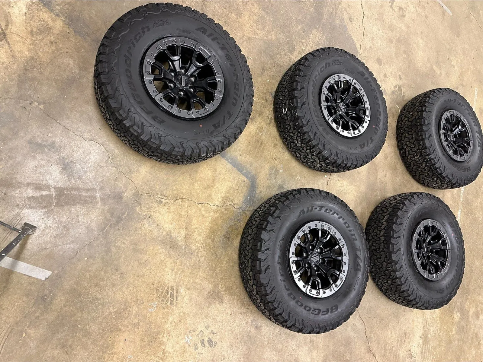 I have a set of 5 takeoff wheels and tires from a 2023 bronco raptor. They are the option Forged Beadlock capable wheels. All in excellent shape, less than 1000 miles on them. Located in Oregon City, OR. Local pickup only. $3300.