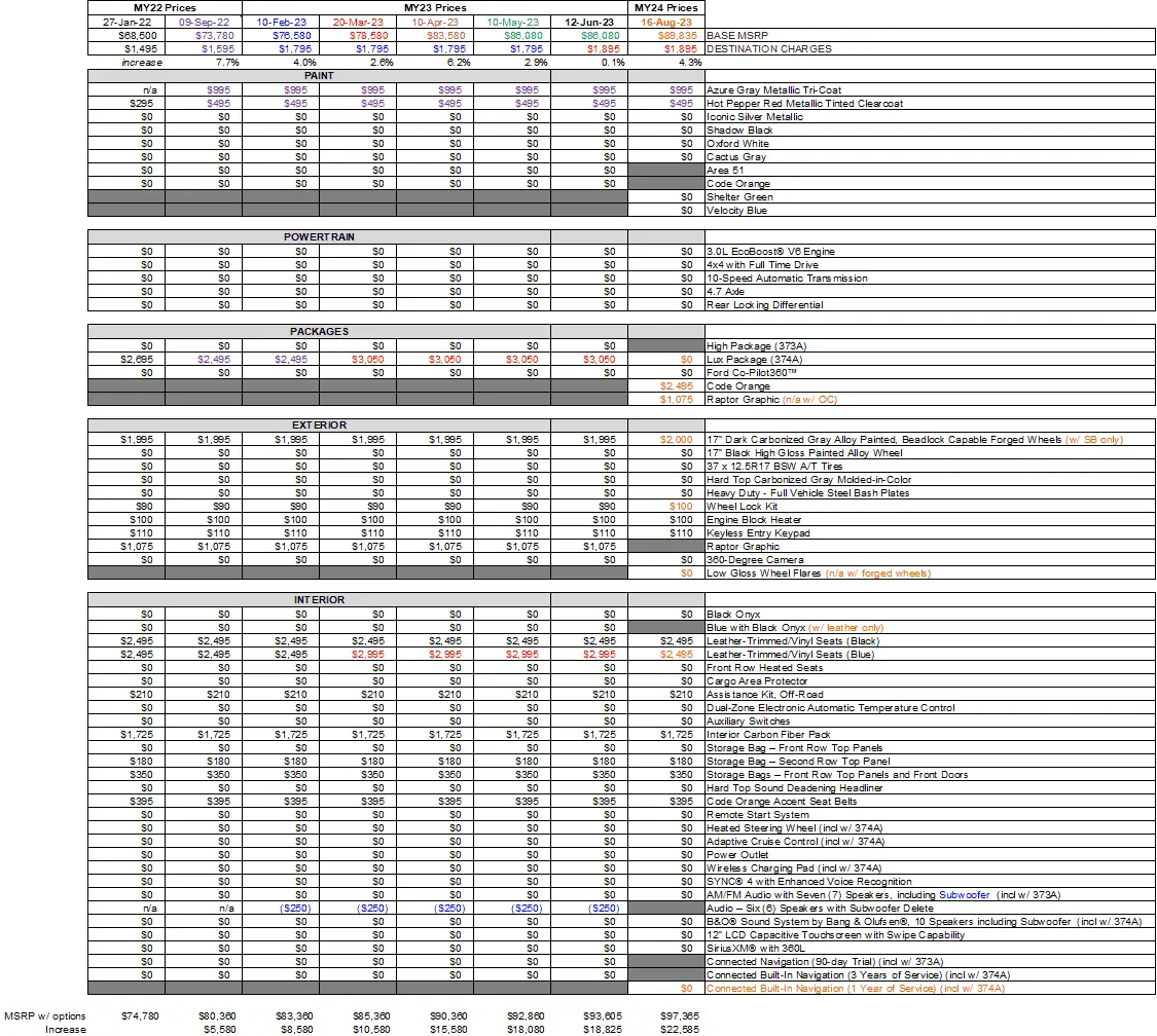 every price increase makes me feel even better about my decision to order off a dealers allotment with an ADM in March 2022. I’ve also grown fond of my Code Orange which is gone in 2024. It’s understandable as 30% or more of the Braptors were Code Orange.
