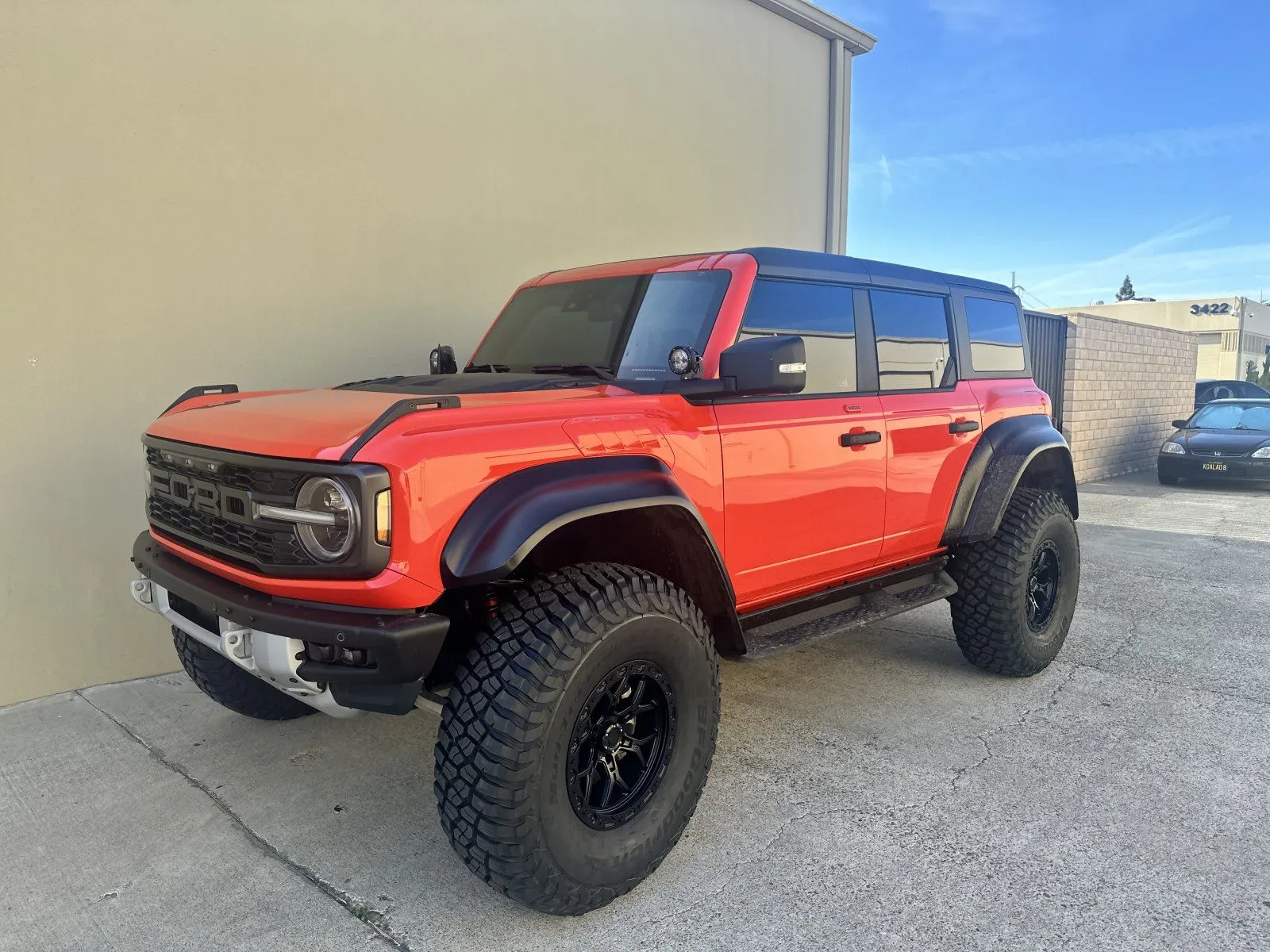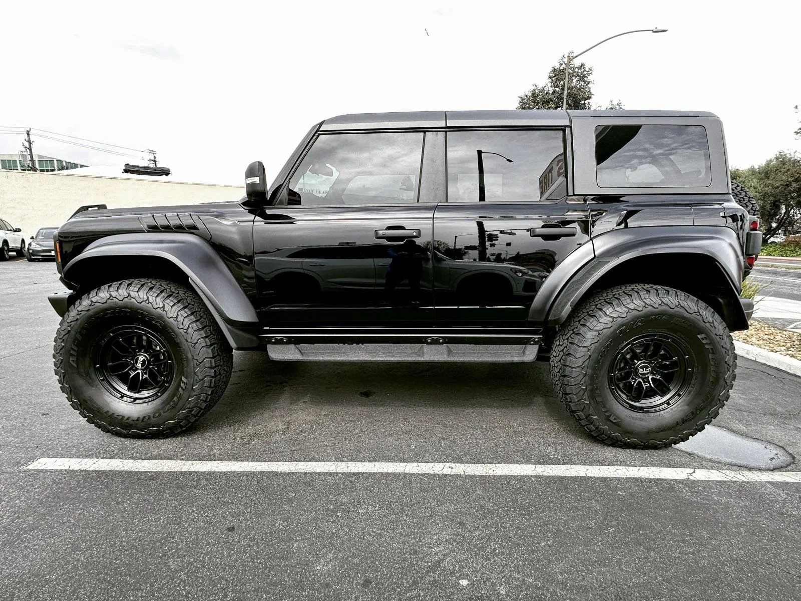 No lift on the CG BRaptor. Stock suspension. It really is a great proportion/look.and, not to mention the extra 10+ lbs going to 40's.
