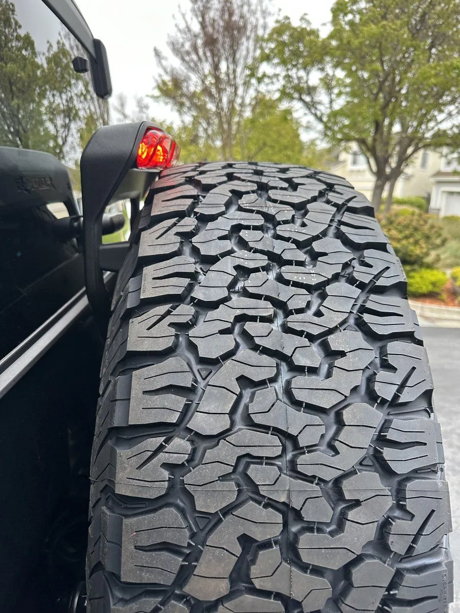 Looks Great! Our 37's are starting to look... small. I like the tire to flare stick out, looks perfect, Well Done!spare tire fits as well and heres a comparison of 37 vs 39 ko2