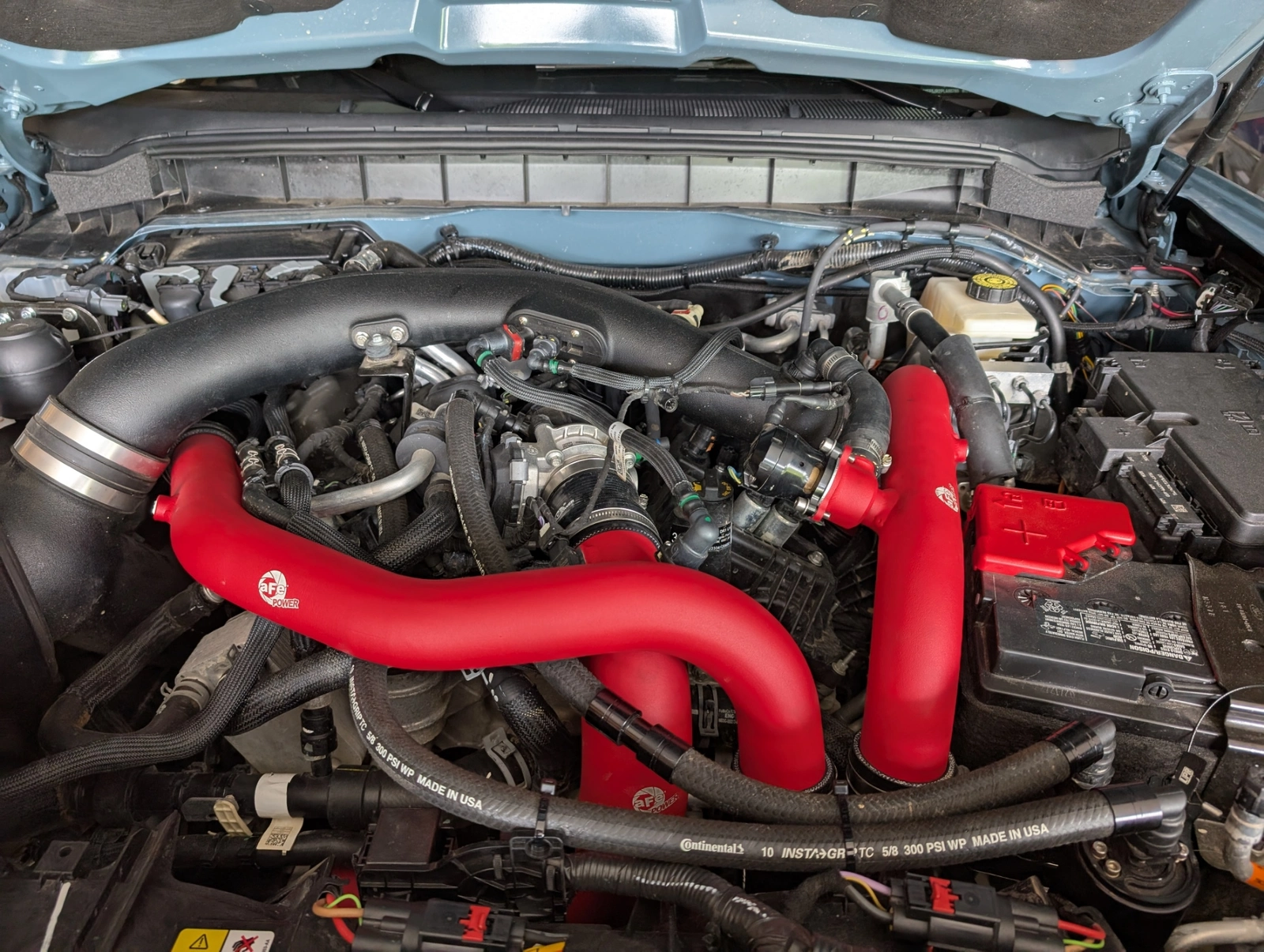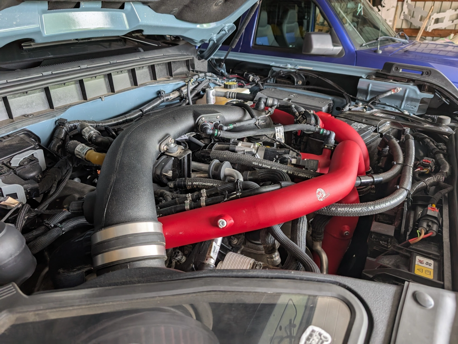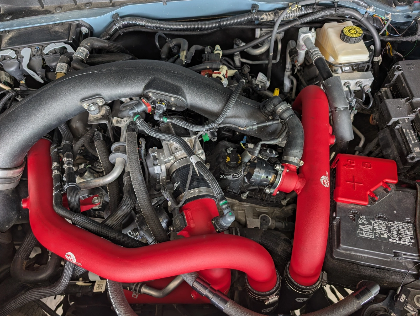 Also, once moving, you'd be surprised at how cool the engine components like intake tubing are with managed airflow through the engine bay while at speed. There are a lot of components heating the air. Compressors are aluminum, heads are aluminum, hot valves, hot intake runners, etc...everyone and their mother uses aluminum as it's relatively cheap, easy to form, there's an industrial base for tubing production and the expertise to make kits without massive investments in special tooling or processes. It's easy enough to ceramic coat them for heat rejection. But honestly, under motion, it makes no difference.