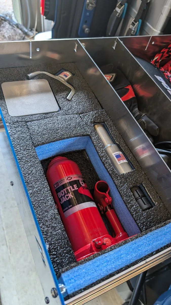 Next layer of drawer foam with the plate/cradle that goes on top of the bottle jack extension: