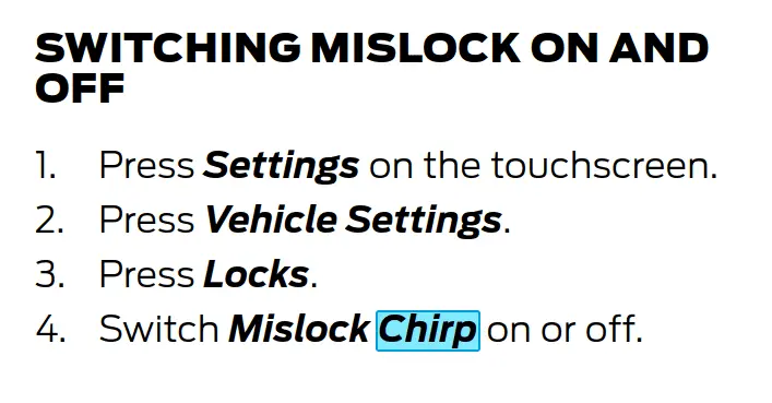 I will leave a door partially open and see if I can replicate itI'm just guessing, above Mislock image and below are clipped from our owners manual pg 90. I searched the PDF version of the manual for "chirp".