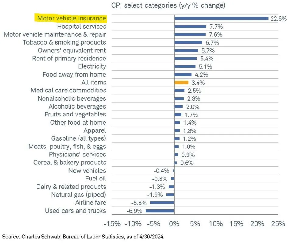 You are correct, I've heard them talk about this on CNBC as well.So, I guess it's not just me. April CPI shows shows vehicle insurance up 22.6%