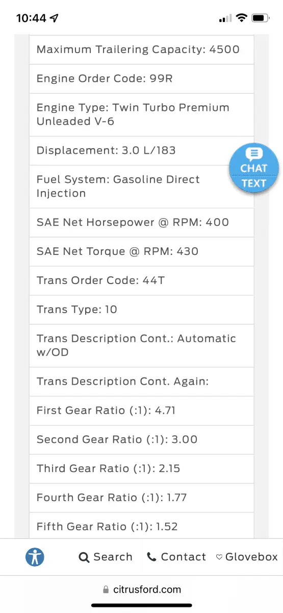 Those are internet-based guesses (not to mention the minimum spec proposed by Ford). The giveaway is that they listed TBD for the fuel economy, and all those numbers (power and MPG) are all certified by the same Federal agency.All the correct specs seem to populate on the listing at first glance. Listing shows 400HP and 430 Torque…… maybe this is correct?
