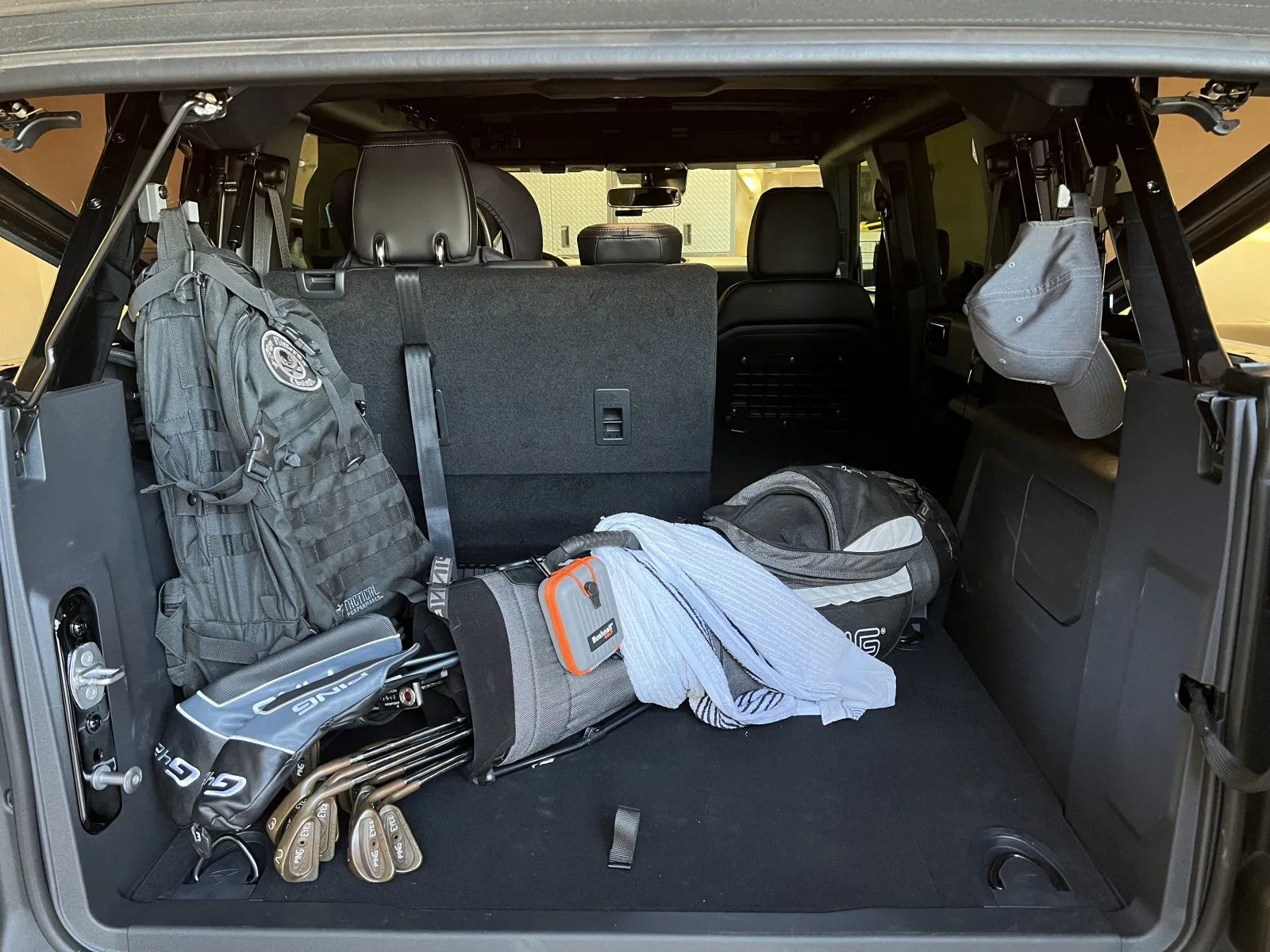 I'm excited to announce a group buy for a set of gear hooks exclusively designed for the Ford Bronco! These gear hooks are made with a High-Modulus Carbon Fiber filament that not only looks great but is also as rugged as the vehicle they are bolted to! Since the Bronco does not come equipped with a garment hook typically found in most vehicles, these custom-made hooks bolt directly to pre-existing holes on the rear rollbar of the Bronco and provide an easy way to hang your dry cleaning, jackets, hats, bags, backpacks, etc.