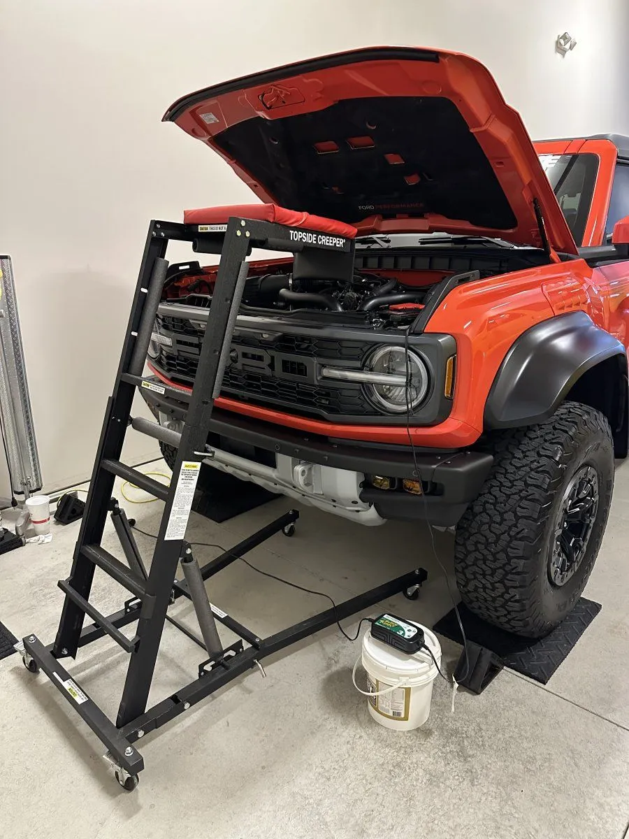 If your tackling this install project yourself, this Top Side creeper makes it much easier as the Passenger (R) side canister is centered on top of the engine at the back.