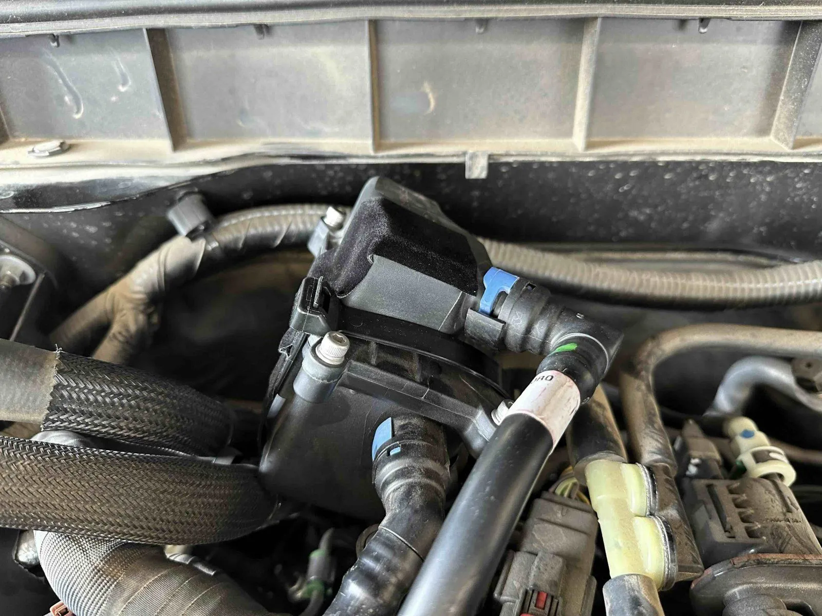 Drivers side with supplied hoses attached, I did carefully pull the HVAC line towards the brake fluid reservoir to provide adequate clearance from the canister, thank you to @Roughstock post here.