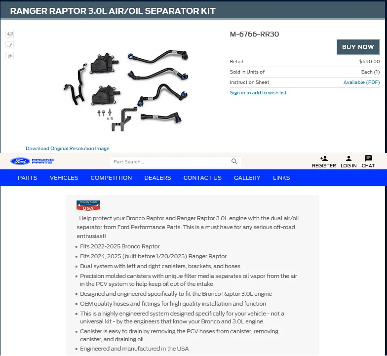 With the arrival and installation of the Newly redesigned Ford Performance Air/Oil Separator kit #