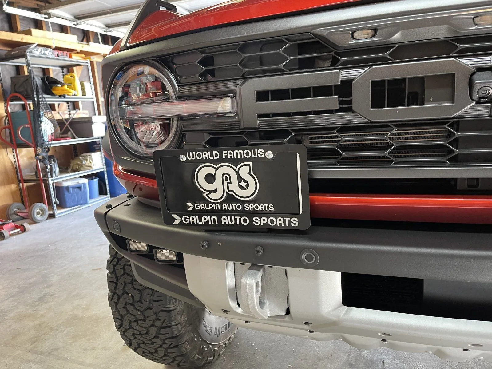 Very Well done! I really like the position with the top edge just below the silver intercooler inlet and the slope!To help any of those that may need to run a front license plate I used the DV8 bracket which clearly states on their website "excludes: Bronco Raptor".