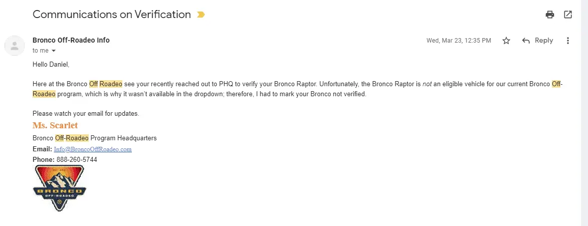 Perhaps they will have Braptors in the future. For example, Austin location has requested 2 of them but so far have been told they will be late this year at best. The offroadeo program itself is not model specific - they run sports in wildtrak, and full sized in most trims. You pick what you want to drive but aren’t guaranteed a particular trim (including raptors in the future - if they have 1 running and 2 of us show, someone will not be in a raptor). I asked for a badlands with Sasquatch to be as similar to the raptor as possible and they made that happen. So even if they get raptors, they will run in the same groups as the others for now. My advice would be to go ahead and do this now! When you go to signup, you have to enter your order number which won’t immediately be recognized (unless you have a VIN - I don’t) - but when you click “verify” they will manually go into the order books somehow to confirm - took about 3 days for me. Farther ahead, once all the new owners who want to go through the standard program have done so, they will expand to offer more focused programs covering specific topics like recovery techniques, higher speed / baja driving, bouldering, etc. They are also planning guided trips and offsite activities run out of the 4 locations plus add-ones like hunting, fishing, golf, etc and have (in Texas) onsite guest lodging in the works. I suspect they might do something specific to raptors then but that is 1-2 years or more away. Again, don’t wait!
