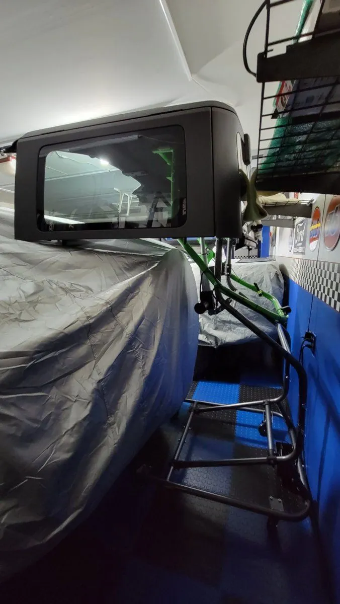 The fastest, safest, single-person Jeep hardtop removal system. Assemble your RollnJack in just minutes! Store your Jeep right under your RollnJack and hardtop. Get the storage bags and take your lift with you!