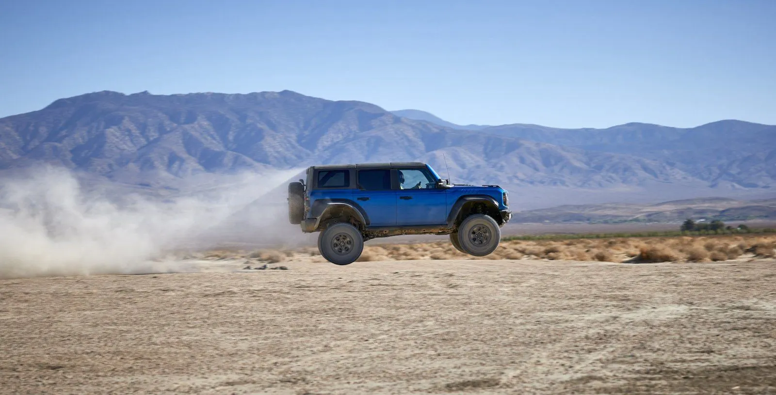 Driver appears to have full helmet on. Might be a pro/Ford driver showing the media “how it’s done”. Most of the media guys were off-road novices.This appears to be the highest "Liftoff" so far. During the Johnson Valley Media event journalist were told to hit the jump at ~60mph, maybe this was 70-80?