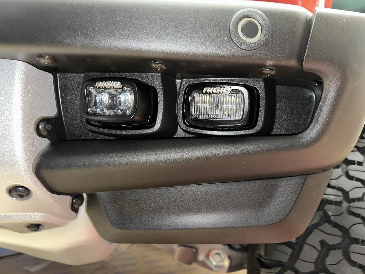 Upon installing the Ford Performance Rigid off-road driving lights I discovered the passenger side fog light bezel was missing, looking back at my photo's and I discovered it was delivered that way. I called my Ford dealer and no problem, he said I'll have my parts guy (George) order a new one. Well, the bezel is shown in the parts catalog but it appears to come with the duel fog light assembly at $550 dealer cost. Couple days later assembly arrived at my dealer but without bezel attached, so to confirm, puzzled George found another Michigan Ford dealer with the same fog light assembly in stock so he called that dealers parts guy and it also didn't have a bezel attached. Even more interesting, is that dealer also ordered for the exact same reason, customers Bronco Raptor was missing the passenger side bezel but they hadn't found the correct part (bezel) number yet.
