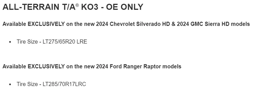 What do people hear about the KO3 tires? A lot of spray about GMC, but no actual substance from BFG.