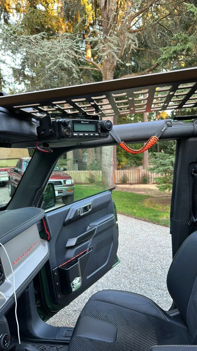Our 6th Gen Bronco Overhead Molle Panels are designed with utility and style in mind. With one panel spanning between the driver & passenger seats and a perpendicular panel running behind them; your gear is readily accessible while seated. Made in the USA.