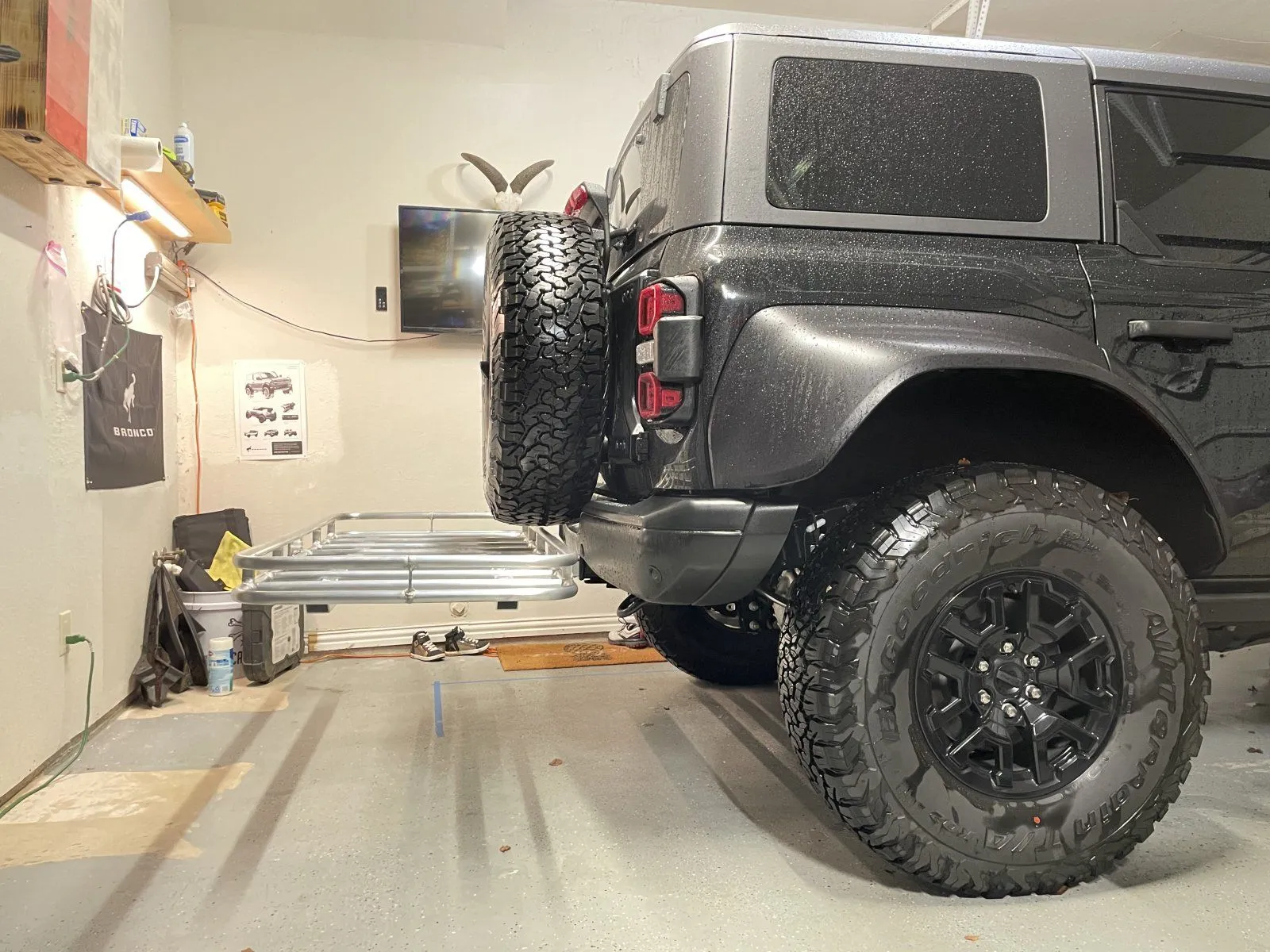 I ordered one of these for extra cargo room. JIC anyone is interested the Pakmule Swayback will clear under the Braptor spare tire. These things are awesome quality and will definitely help with added cargo space.