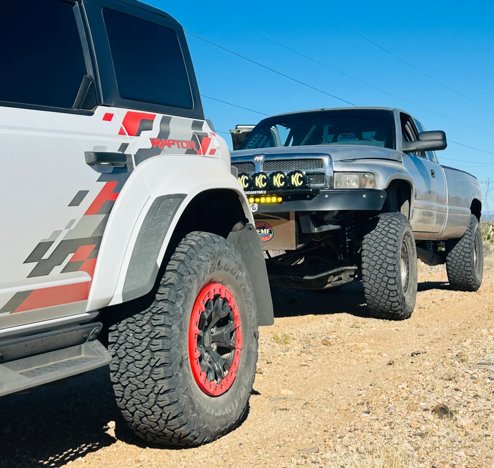 Just a couple of Braptors doing a fun run with some small jumps(30-ish in total) on this section of road. We were part of a SEMA event we spear headed for Carbon Shocks. Had a few full size Dodge diesels and a couple of TRXs which were all equipped with Carbon shocks. We had a great time with just a little carnage ......3 flats, a spare tire flying out of a bed, a brand new Baja Designs LP6 that left the chat early in and a shock resi that was knocked off its mount. Typical desert fast stuff, lol. Never found the LP6 though, sadly. But, both Braps had zero issues! Good times. Not much media off iPhones, but they grabbed a few action shots and still pics.