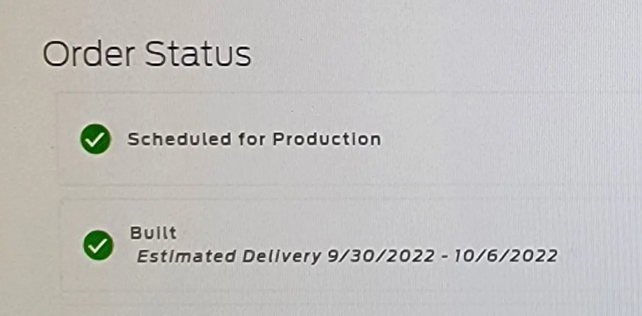 Where are you seeing delivery dates on the tracker? Mine is in shipped status as of yesterday.There was a Plant delay on my vehicle for a couple weeks. Just Checked the Tracker app and it shows " Awaiting Shipment". I show delivery dates of 09/30/22 to 10/06/22. So, anyone that may have been in a similar situation hopefully your Vehicle is heading your way!