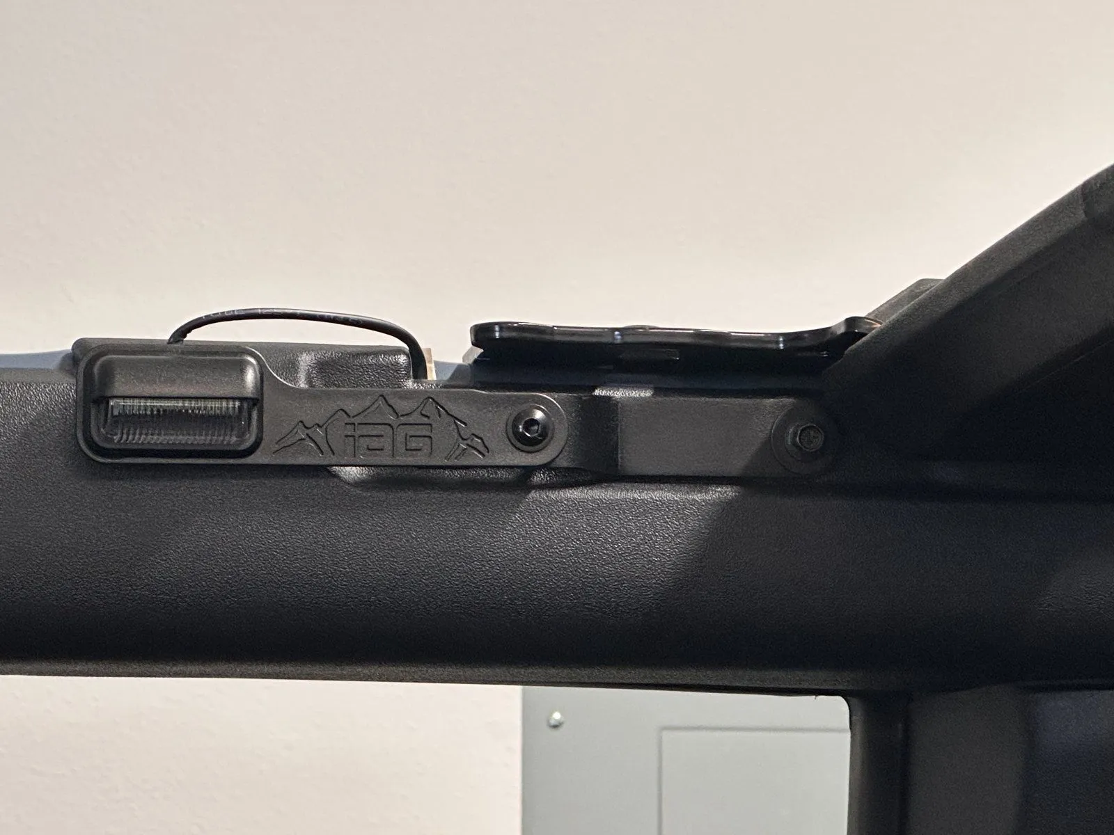It occurred to me when I took the top off the other day that the front brackets for the IAG interior lights might interfere (if not rub/tear) through the JTops Bimini Sunshade when I install them. If you look closely, the front brackets sit above the top edge of the interior trim covers relatively close to where the JTops will be placed underneath the B-Pillar Raptor brace. Given the JTops appears to fit pretty snuggly (which is a very good thing), I saw a point of potential concern.