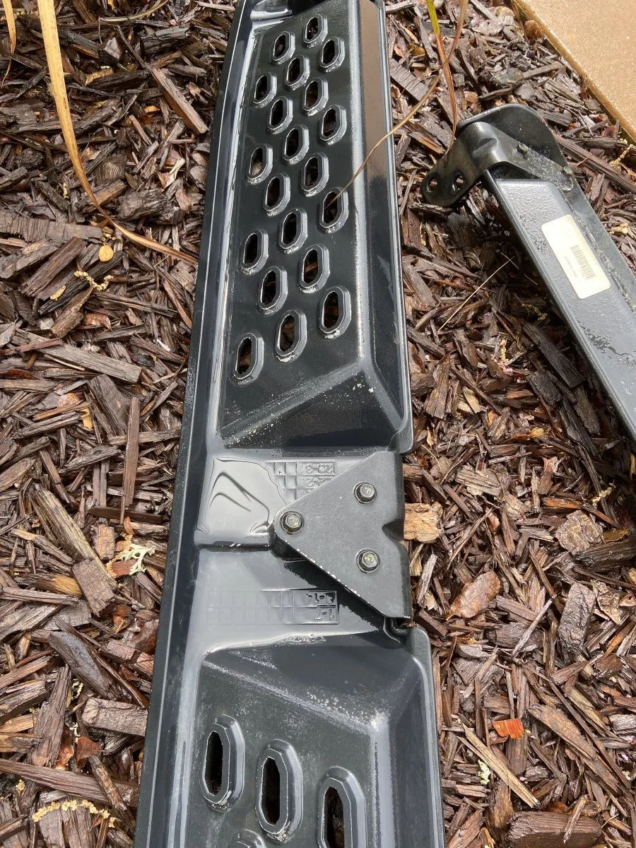 Prepping to take the neighbors kids to the local OHV park (Prairie City) tomorrow, I removed my sidesteps. Done this many times, but I decided to clean the mud from off-roading yesterday and noticed how many rock strikes (chips) these babies take. No surprises, but in case you’re interested in what 5000 total miles (maybe 400+ in Mojave and local trails) looks like…..