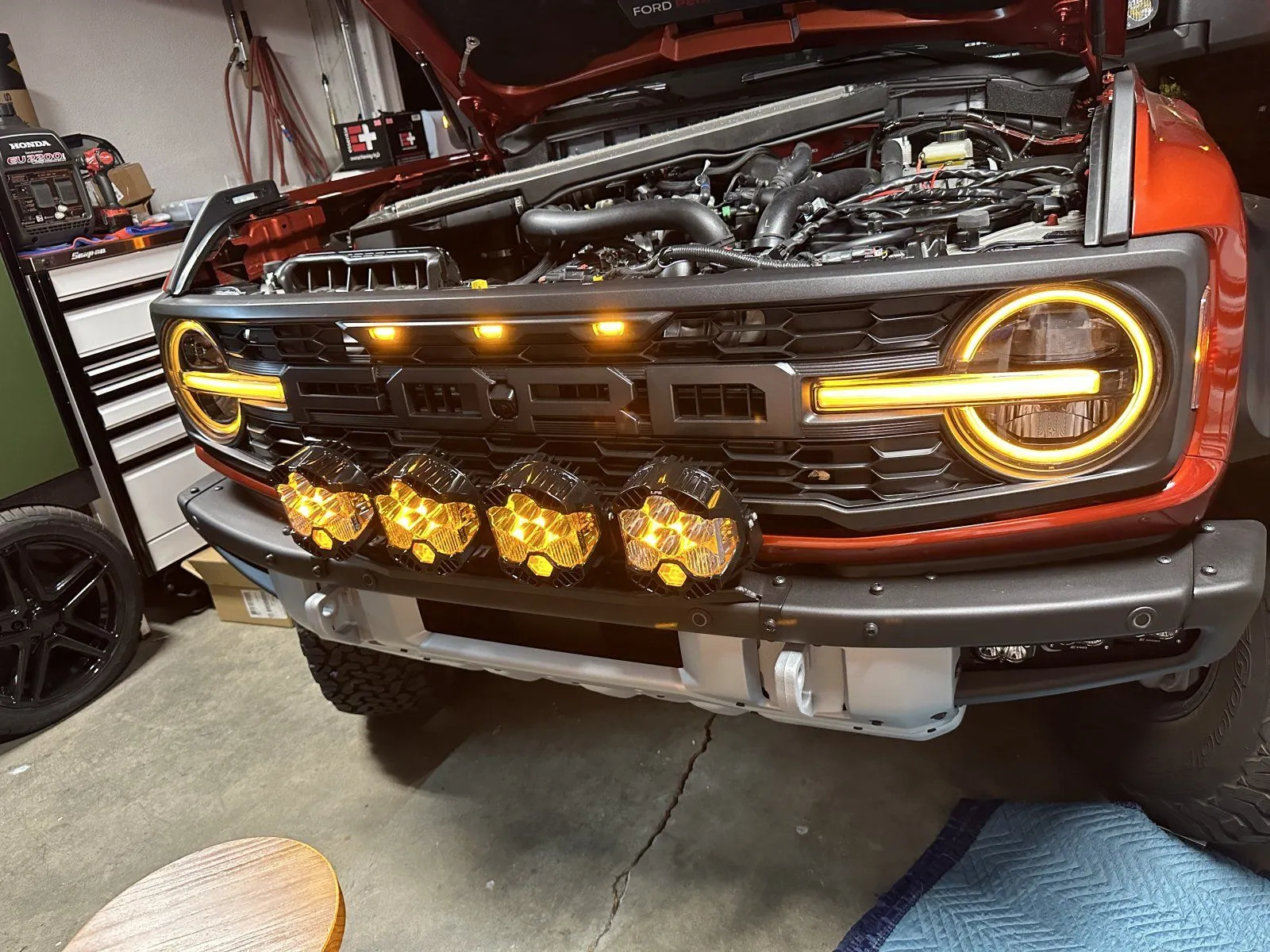 The 4 lights on the bumper; used the Baja Design universal harness. I didn't want to use the toggle switch it came with so I modified it to work with my uplifter switches. Still waiting for the Bronco S-pod to come out. The install was pretty straight forward.Getting ready to install the same. How did you wire everything up?
