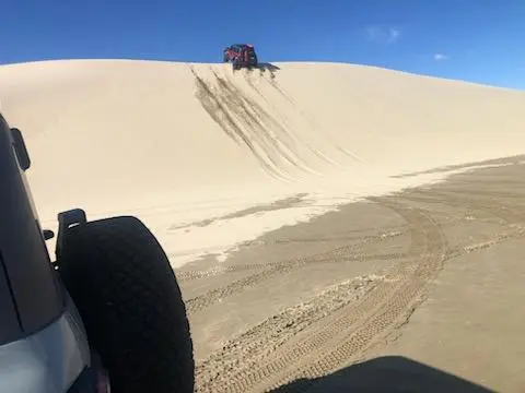 Strands Siberia Single Row 32" Light Bar. I really like the amber light bar function from both the Pods and the Lightbar itself. Since the amber headlamp feature flickers when taking the photos you don't see in these pictures how well they work together but it creates a really good appearance. I looked at other options that provide a similar backlit 'bar' look but I wanted better overall driving light performance and not a fan of the "dotted-line" look that you see with a competitive product.