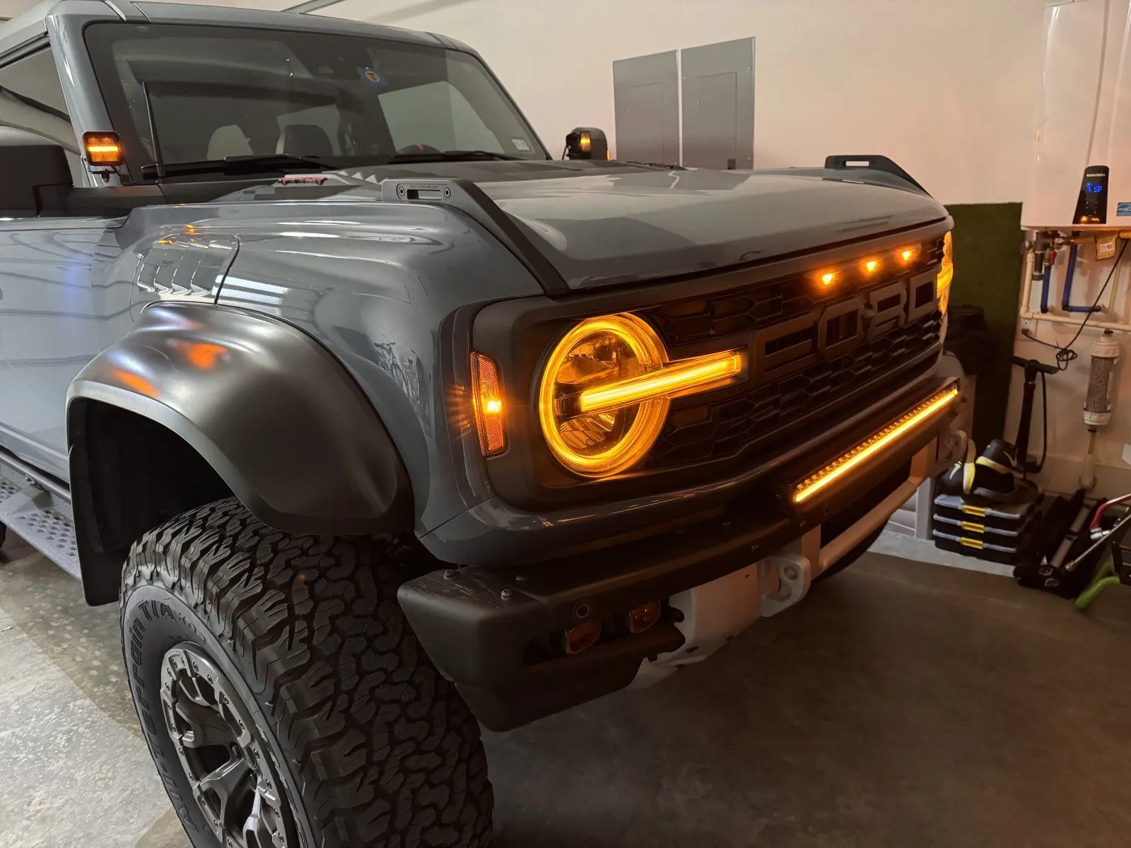 Thanks. Was able to capture a pic that shows the full Amber DRL look with the headlights, markers, pods and bar. Will see about getting out in the dark for impressions on the driving light performance as well as proper aim.Great looking lightbar and install, well done!