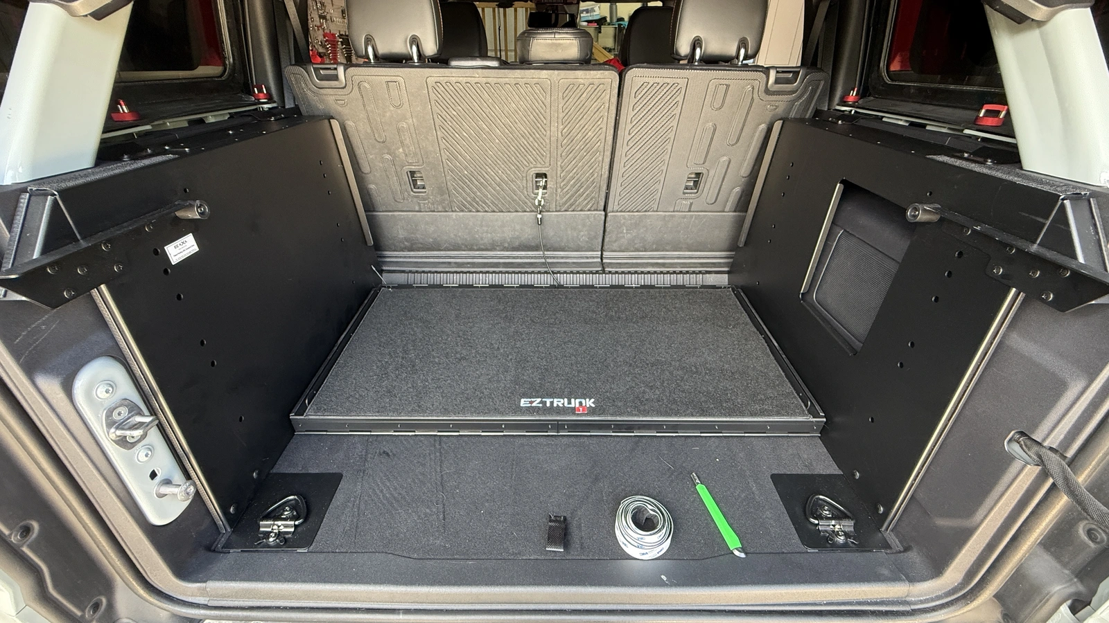 Been waiting on this for months and it finally arrived yesterday. Despite being swamped from the day job, I tackled installation last night as I needed something mindless to do for a bit. I did order the carpet kit and will install that this evening. The EZ trunk folds flat when not needed and zero rattles on the way in to work this morning. I think my bass response has improved as well. I was a bit worried it would muffle the sub.